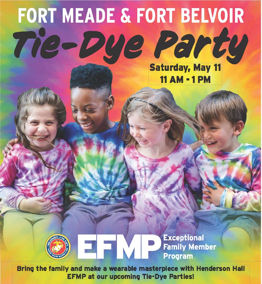 Bring the family and make a wearable masterpiece with Henderson Hall EFMP at our upcoming Tie-Dye Parties!