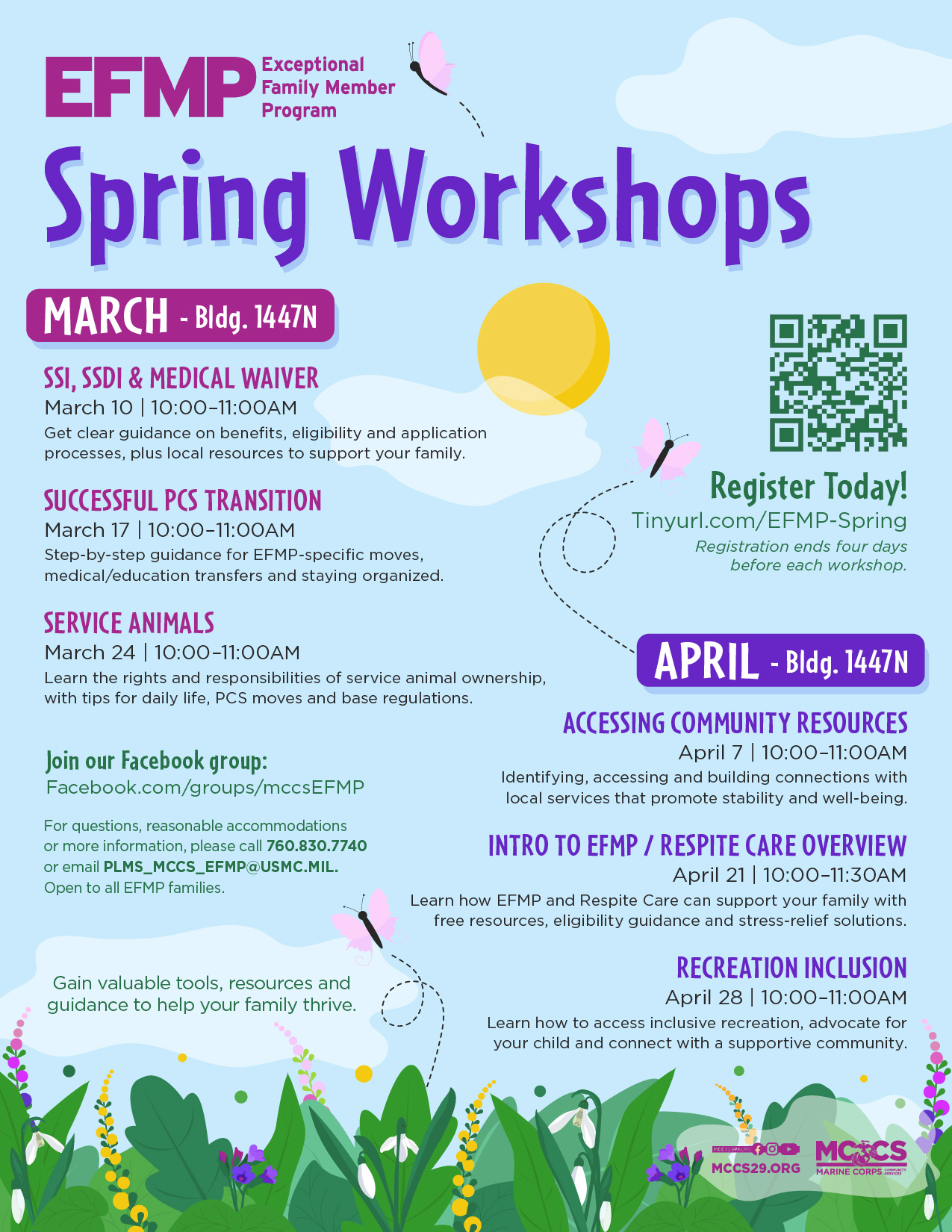 Join our Facebook group for the latest updates and program information: facebook.com/groups/mccsEFMP